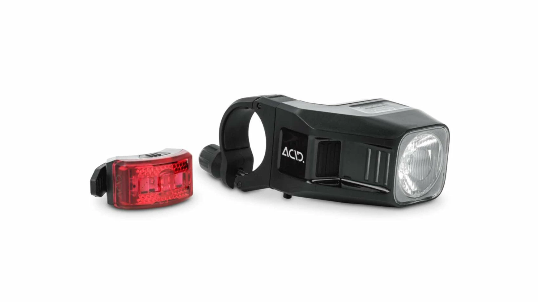 Enorme Strahlkraft mit Style! Mit unserem Beleuchtungsset bestehend aus dem ACID Frontlicht PRO 80 und dem ACID Rücklicht PRO sind Sie immer sicher unterwegs. Das Set ist StVZO zugelassen, spritzwassergeschützt und per Micro-USB-Ladekabel bequem wiederaufladbar. Das asymmetrische Design des Frontlichts ermöglicht eine mittige Positionierung und sorgt für einen cleanen Look am Bike. Dank Stangenhalter mit Slide-Lock Befestigungssystem und Silikonband lässt sich das Set ganz einfach – und ohne Werkzeug – montieren.