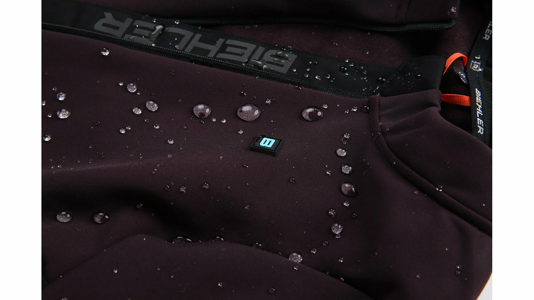 Es besteht aus einem hoch dehnbaren und atmungsaktiven Stelvio-Thermomaterial, das aufgrund seiner technischen Eigenschaften über eine sehr gute Wärmebalance verfügt. Die Außenseite bietet zusätzlich eine DWR-Ausrüstung (Durable Water Repellent) für erhöhte Wasserfestigkeit. Spritzwasser und Niesel perlen an der Oberfläche ab. Die DWR-Beschichtung kann mit jedem handelsüblichen DWR Refresher erneuert werden. Biehler empfiehlt nach ca. 30 Wäschen eine Erneuerung. Eine dünne Schicht Mikrofleece auf der Innenseite garantiert Wärme und ein komfortables, weiches Gefühl auf der Haut für ausgezeichneten Tragekomfort.