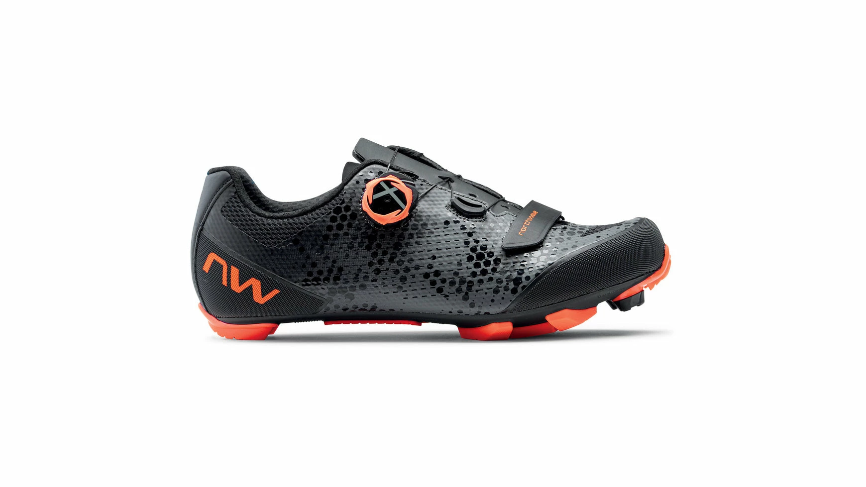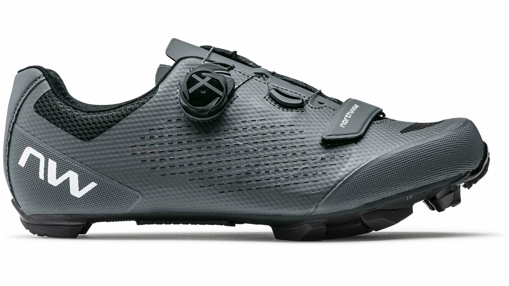 Der Razer 2 MTB von Northwave sorgt durch seine XC 10 Sohle mit einem Steifigkeitsindex von 10,0 und TPU-Einsätzen in strategischen Punkten für hohe Traktion und hervorragende Verschleißfestigkeit. Die Unibody-Konstruktion kombiniert strategisch platzierte große Mesh-Einsätze mit ultradünnen, verstärkten Materialien, um unvergleichliche Atmungsaktivität und gezielte Stabilität zu gewährleisten. Die asymmetrische Schnürung entlastet die Oberseite des Fußes und ermöglicht so eine optimale Passform. Heißverschweißte TPU Verstärkungen im Zehen- und Fersenbereich geben zusätzliche Protektion. Der SLW3 Drehknopf mit einem Extra-Klettverschluß ist der Einzige, der durch einfachen Knopfdruck stufenweise gelockert und komplett geöffnet werden kann. Das Performance Regular Fußbett sorgt für noch mehr Halt von unten.